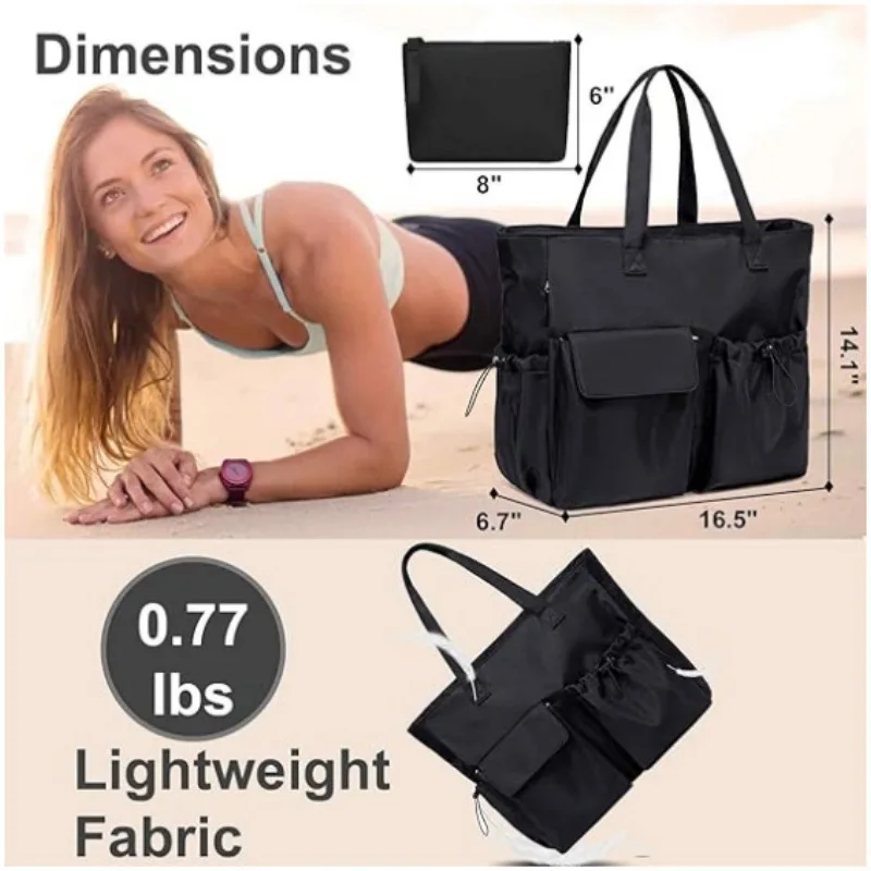 Custom Large Capacity Waterproof Women Tote Bag Pool Bag Travel Bag Women's Casual Yoga Bag with Zipper